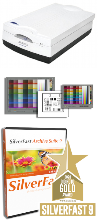 The SilverFast ScanDuo (Film & Photo) package is the ideal solution for anyone who wants to digitize both film (slides & negatives) and paper photos to a high standard. The combination of a specialized 35mm film scanner with a compact A4 flatbed scanner offers maximum flexibility for mixed image archives. With SilverFast Archive Suite 9, IT8 targets, and a Resolution Target, you receive a complete professional set for color-accurate and highly detailed scanning.
