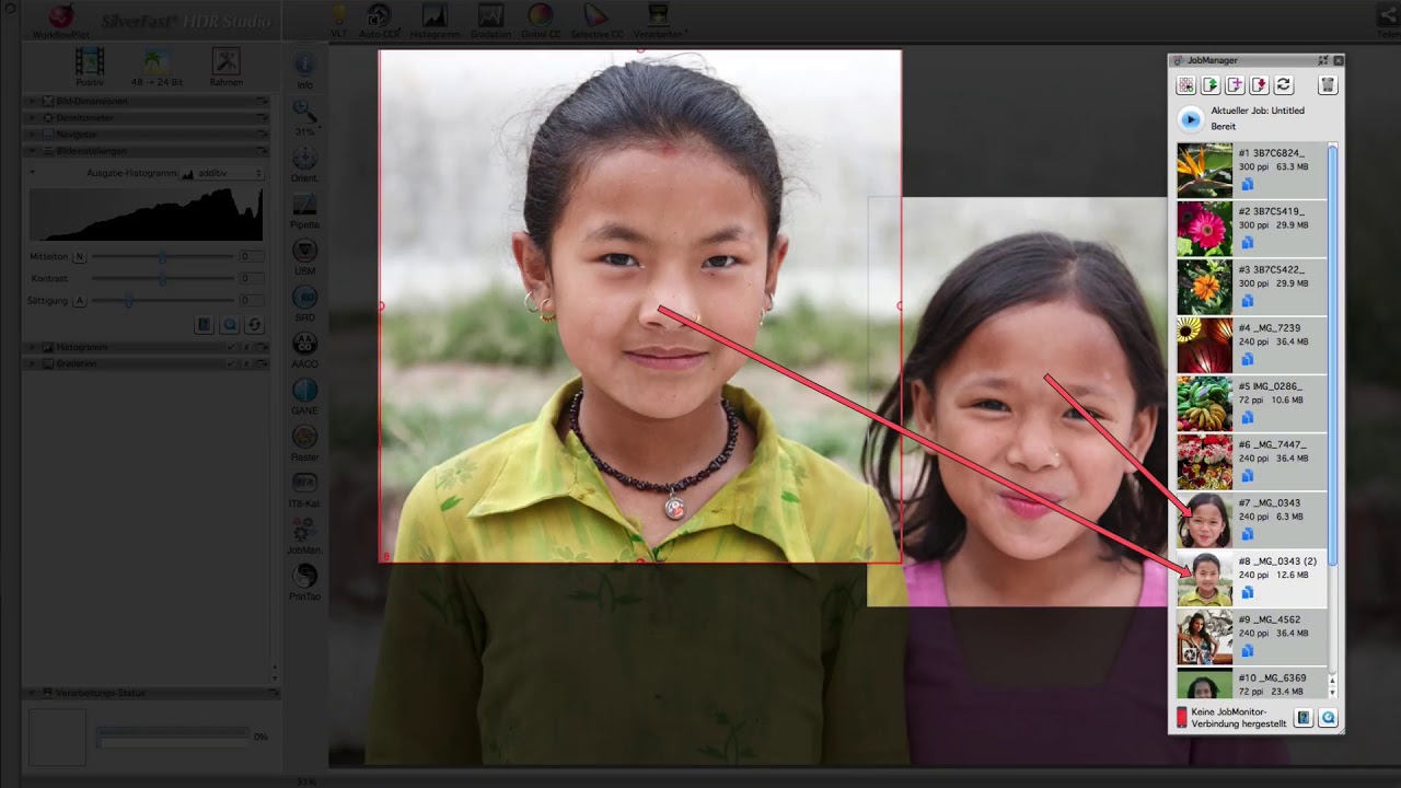 SilverFast HDR enthält hervorragende Werkzeuge, um Farbstiche und Defekte wie Staub und Kratzer aus gescannten Bildern und anderen digitalen Bildern zu entfernen. Restaurieren und optimieren Sie Ihre Bilder mit voller Farbverwaltung. SilverFast HDR ist mit seiner einfachen Bedienung eine echte Alternative zu Photoshop.