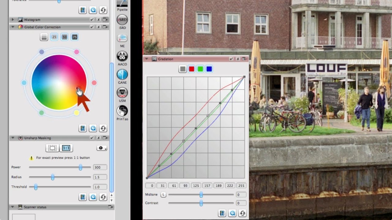 Die globale Farbkorrektur geht mit SilverFast besonders einfach und intuitiv: Unsere Funktion GCC wird über ein Farbrad, mit einem schwarzen Punkt gesteuert, der aus der neutralen Mitte zur gewünschten Farbe hin verschoben werden kann. Die Farbstimmung lässt sich gleichzeitig in der Vorschau beurteilen.