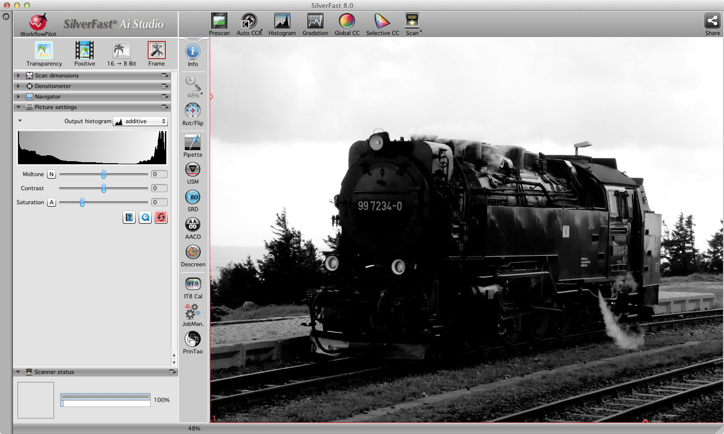 The SilverFast AACO automatic starts to work, once the AACO feature is activated. Turn it off and on with the check mark in the tool dock to visualize the effect in the preview window.