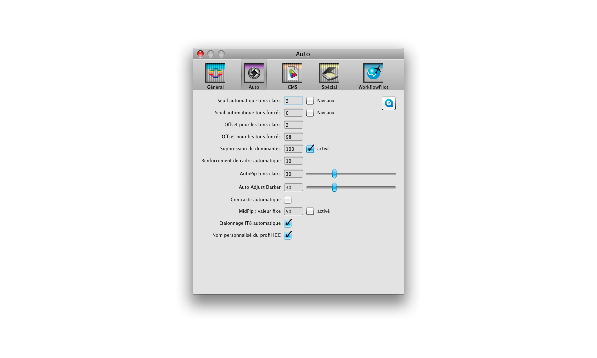 Dans SilverFast Ai Studio l‘optimisation automatique de l‘image est autant facile à manier que dans SilverFast SE. Un seul clic de souris suffit pour démarrer automatiquement l‘optimisation de l‘image. En plus l‘optimisation de l‘image vous permet une configuration individuelle pour pouvoir fixer exactement par exemple la valeur seuil pour les points noir et blancs.