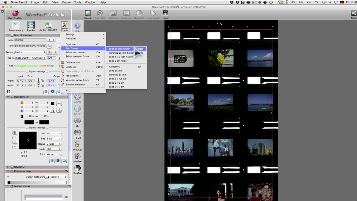 We developed the IFF+Engine (Intelligent Frame Finding) that intelligently searches for photos, slides and filmstrips, which lie on the flatbed or in the film holder. All image frames are now perfectly found. In addition, the frame outset option ensures that no images are cropped during scanning. Store your images on your hard drive, fast and securely with your SilverFast Archive Suite.