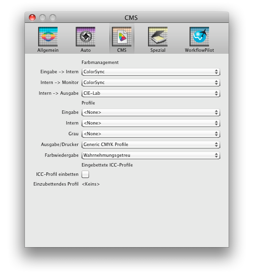 - Wählen Sie den Reiter 'CMS' für Color Management.