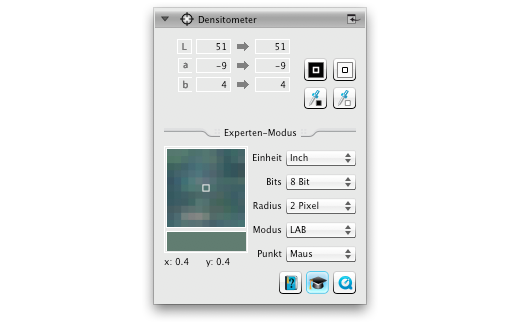 - Rufen Sie im Densitometer-Dialog den Experten-Modus auf.