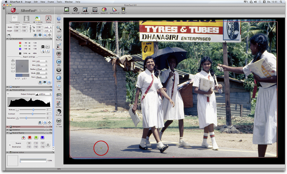Mixed lighting conditions during image capture often result in images with color casts. Manual correction is time consuming and can lead to falsified colors. The SilverFast Neutral Pipette is a tool, which makes color cast removal very easy.