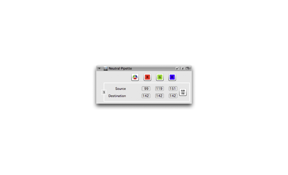 A mouse click on the icon "Pipette" in the vertical toolbar opens a drop-down menu. By selecting the entry "Neutral Point" the mouse cursor turns into an eyedropper. By clicking on a color area of the image, which should appear neutral, the color correction is performed automatically. The exact change in color values ​​at this point can be seen in the tool dialog "Neutral Pipette". The neutral point can be deleted and set again at any time.