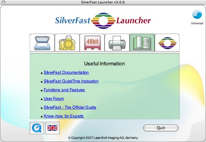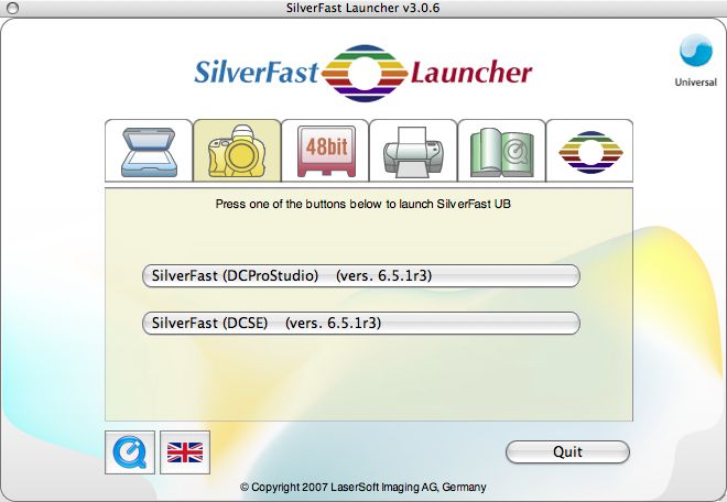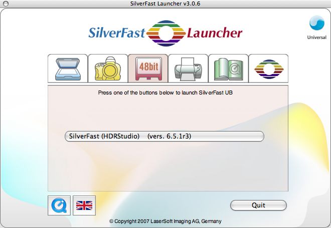 Le SilverFast Universal Launcher en tant qu'application standalone