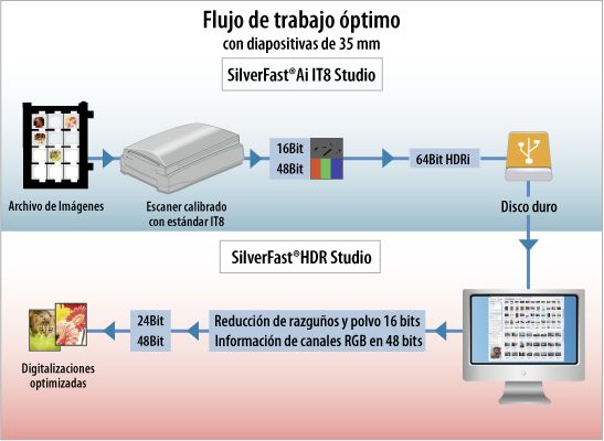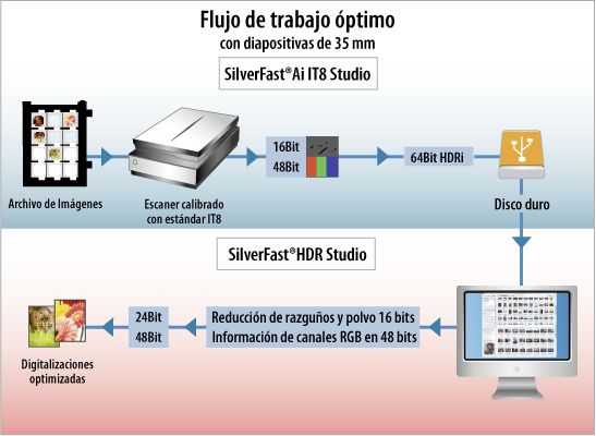 ![]() Flujo de trabajo SilverFast HDRi (para ampliar haga click) |