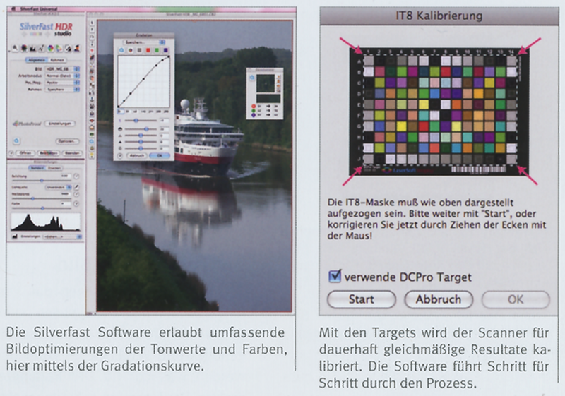 Besonders das beiliegende SilverFast in der Version Ai IT8 Studio hat den Redakteuren gefallen. Multi-Exposure und die IT8-Kalibrierung mit ebenfalls enthaltenem IT8-Target konnten überzeugen.