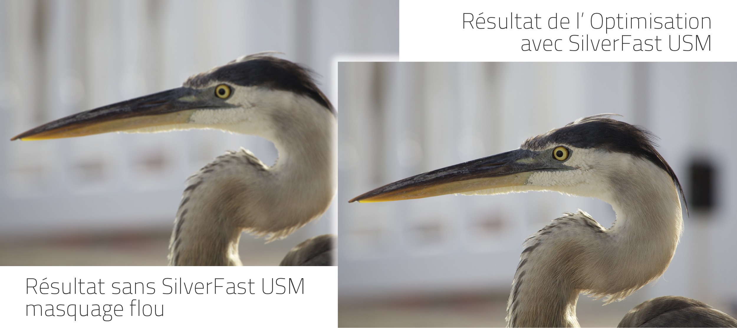 Pour rendre vos images plus nettes, SilverFast 8 fournit la fonction USM (Masquage Flou). Pour rendre une image plus nette correctement, la résolution qui va être utilisée doit être prise en compte. Pour les différentes résolutions de numérisation il faut des paramètres de netteté individuels.