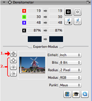 Um individuelle Rahmen zu rotieren/spiegeln, benutzen Sie das Werkzeug im Experten Dialog des Densitometer.