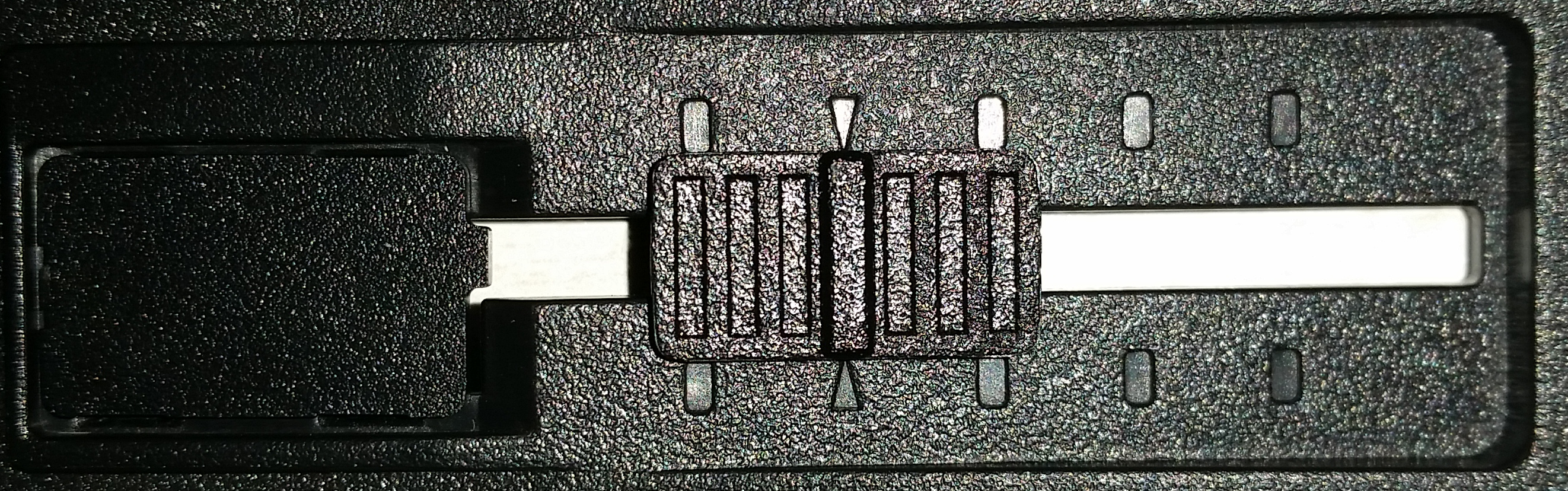 Halter des V800/850 haben Schieberegler, über die die Halter in eine leicht niedrigere oder eine von drei höheren Positionen gebracht werden können. Die normale, standard Position wird durch die Pfeilförmige Markierung angezeigt.
