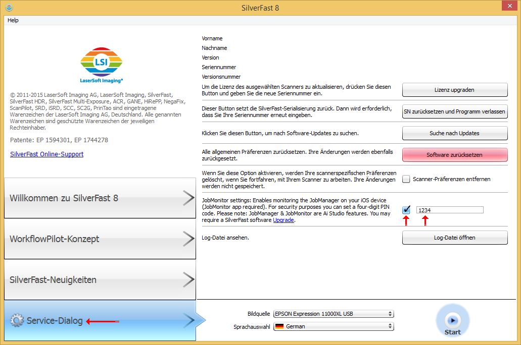 Das Startfenster des JobMonitor zeigt meine SilverFast Software nicht an.