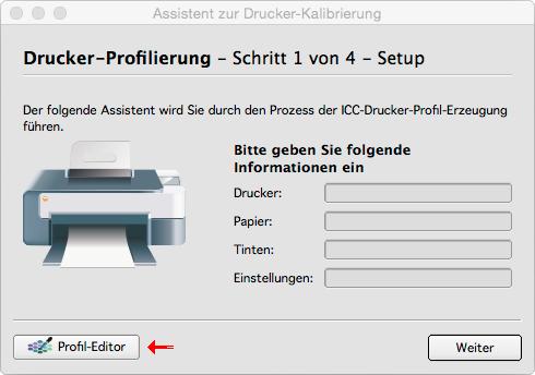 Um Ihnen die Anpassung eines bereits existierenden Profils zu erlauben, bietet SilverFast den Profil-Editor an. Sie können den Profil-Editor über die Drucker-Kalibrierung erreichen.