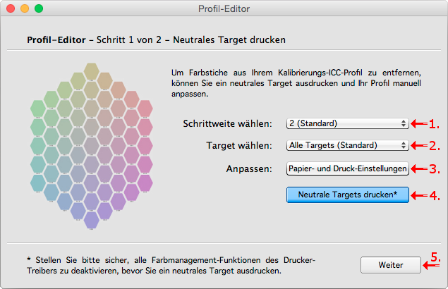 Im nächsten Schritt drucken Sie das Neutrale Target. Dies kann auf unterschiedliche Arten erfolgen, um eine optimale Anpassung zu erlauben.