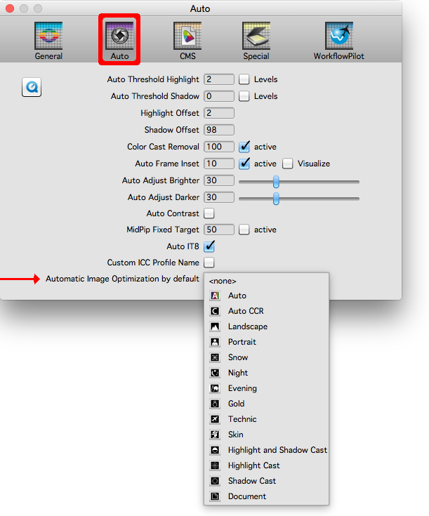 The image auto adjustment can be selected in the preferences' Auto tab.