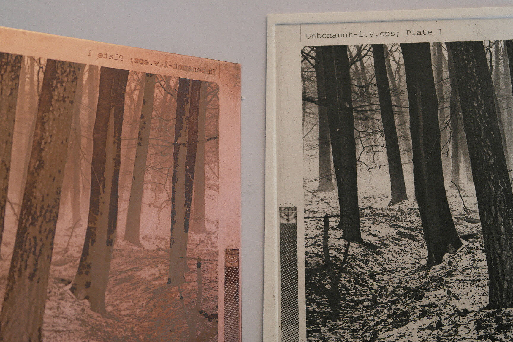 Heliogravure is one of the few "Precious Printing Processes", which is still practiced "professionally" today. Of course it is possible that some readers may apply other methods and achieve professional results, too. What are Precious Printing Processes? The photographers of the early 20th century were faced with the task of converting their "sensitive" silver images into a durable form and maybe to be able to creatively intervene or refine. The paper and color of subsequent images were almost arbitrary. There have been many methods: oil print, brom oil print, Heliogravure, pigment (carbon) printing, etc. Those who are interested, will certainly find enough information on the web. Representatively we will explain pigment printing, because it is "related" to the Heliogravure and it belongs to the subgroup of pigment process. Carbon Printing / Pigment Printing For pigment printing you can not start from an existing photographic print like with some other precious printing methods. Pigment printing requires a halftone negative in the size of the final image. This assumes that you can produce such a halftone negative in a darkroom. Today, these film is available only in normal small picture or roll films formats, and also in postcard size, for those who are still committed to the analog photography. The pigment paper consists of a colored gelatin layer on a paper base. This layer is made sensitive to light in a bath of potassium dichromate and after drying it is exposed under the negative. Then, after a new "wetting" it is crimped to a new paper, for example handmade paper. After some time, it can be developed in warm water. Those portions of the layer uncured at the exposure dissolve, the base paper is pulled off and after the complete development there remains a color image with real pigments on an arbitrary base paper. This of course needs to be dried. These images are virtually durable "forever" and thus "refined". This description illustrates the enormous effort, which is exacerbated by the fact that a number of factors that are really difficult to influence have to be expected - only experience provides standardized results. In this context, unfortunately, it has to be noted that the term pigment printing is today also used for "simple" inkjet prints, with the statement that the inks used would indeed be pigmented. The same often applies to the term lithography, although certainly it has not been printed from a stone. Heliogravure – The Process Based on the description above, it is obvious that the Heliogravure as a precious printing process can not be simple. On this website we will also explain the way of producing a Heliogravure for "rescuing" old graphic art. This article should be read first in order to better understand anything further. Like for pigment printing, an analog image, for example a photo, could be the starting point. However, it is necessary to digitize it using a scanner, SilverFast delivers excellent results here. Similar to the pigment printing, you need to fabricate a copy on film corresponding in size to the later print, but as a side-inverted positive. This could lead to film with a size of 80 x 100 cm or larger. The necessary data can either be generated by scanning or you directly access a digital camera file. Of course it is important to have a file with a sufficiently large resolution – a rule of thumb is 300 ppi. For a grayscale image you will need a single film, for a color original you will need four films – so-called color separations. Today, these films are produced using an imagesetter and stochastic rasters, or they are printed with an inkjet printer. The reason for this approach is that continuous tone film in this size is no longer produced. This positive will now be exposed onto a sensitized pigment paper, which is crimped to a copper plate after the exposure. In advance, the copper plate was placed in a special box with asphalt dust which covered about half of the copper. This dust must be melted firmly to the plate. After transferring the plate is developed in warm water. After drying the result on the plate‘s surface is a negative relief of the image. This relief is used for controlling the etching process with ferric chloride. Various baths with different water content are required. This enables the differently thick pigment parts are penetrated at different rates, so a relief can be etched into the copper plate. The previously applied dust causes small blisters to arise, just like an aquatint. It is understandable that only a correct exposure with "sun-like" light, hence the name Heliogravure, results in a correct relief. Overexposure would make the etching process impossible, because the entire layer would be hardend. Underexposure would result in a too rapid etching process, which might take 12 minutes for a correct exposure. In this context, there is some help through a so-called Stouffer wedge, which is still available. This wedge shows gradations of gray values, which increase the tone value by a certain amount from stage to stage. At the beginning of the exposure of a plate, you expose this wedge several times on pigment paper and developed it on a paper or a glass plate. The number of gray levels that are visible, give a precise indication of the exact exposure, regardless of whether you actually exposed to the sun or a sun-like light source, for example, a "facial tanner". After cleaning and usually blasting the plate, the plate can be colored with any color. The printing is done individually on a copper printing press on arbitrary papers. This shows the advantage over the pigment printing: It is possible to print short runs to change color and paper in between, etc. The need of devices, such as a heavy copper printing press, the complexity of the procedure and the required materials imply that this technique needs years of practice until it leads to success and reproducible results. Heliogravure is therefore not easy to use, 