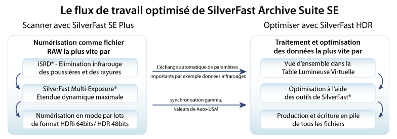 Le logiciel de numérisation SilverFast SE Plus vous permet de capturer des données brutes (RAW) 64bits/ 48bits que vous pouvez ensuite traiter dans SilverFast HDR. Ces donnés brutes contiennent toutes les informations de vos images, les rendant idéales pour la retouche ultérieure. La nouvelle SilverFast Archive Suite SE contient les deux programmes SilverFast SE Plus et SilverFast HDR.