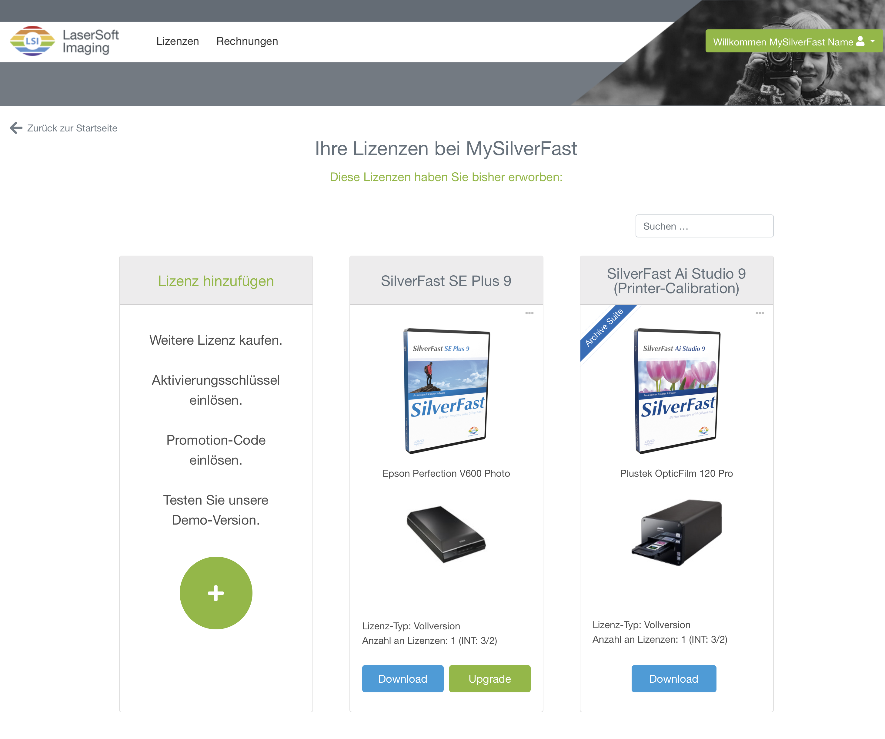 Verwalten Sie Ihre Lizenzen übersichtlich im neuen MySilverFast-Benutzerkonto. Ab sofort gibt es kein Seriennummer falsch eingeben oder verlegen mehr.