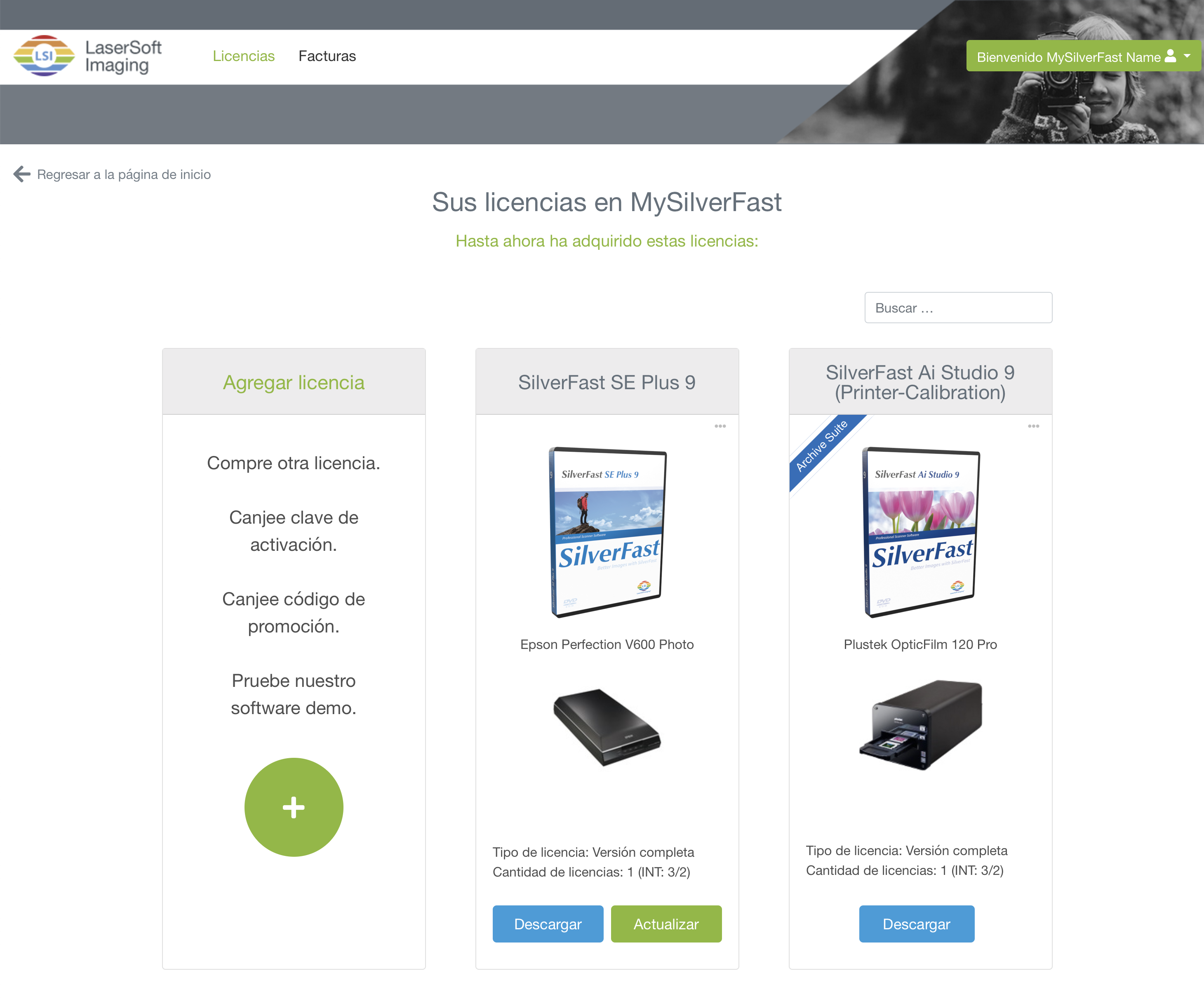 Administre fácilmente sus licencias en la nueva cuenta de usuario MySilverFast. A partir de ahora ya no habrá más errores de escritura o extravío de los números de serie.
